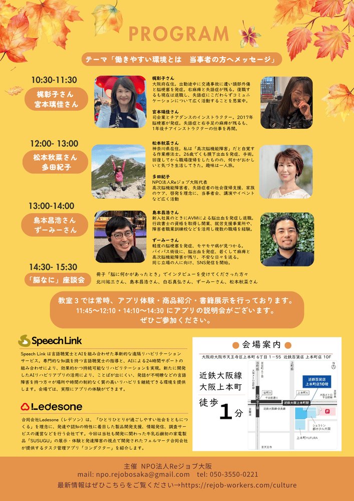 失語症や高次脳機能障害に関わる多種多様な方々からお話を聞くことができます。